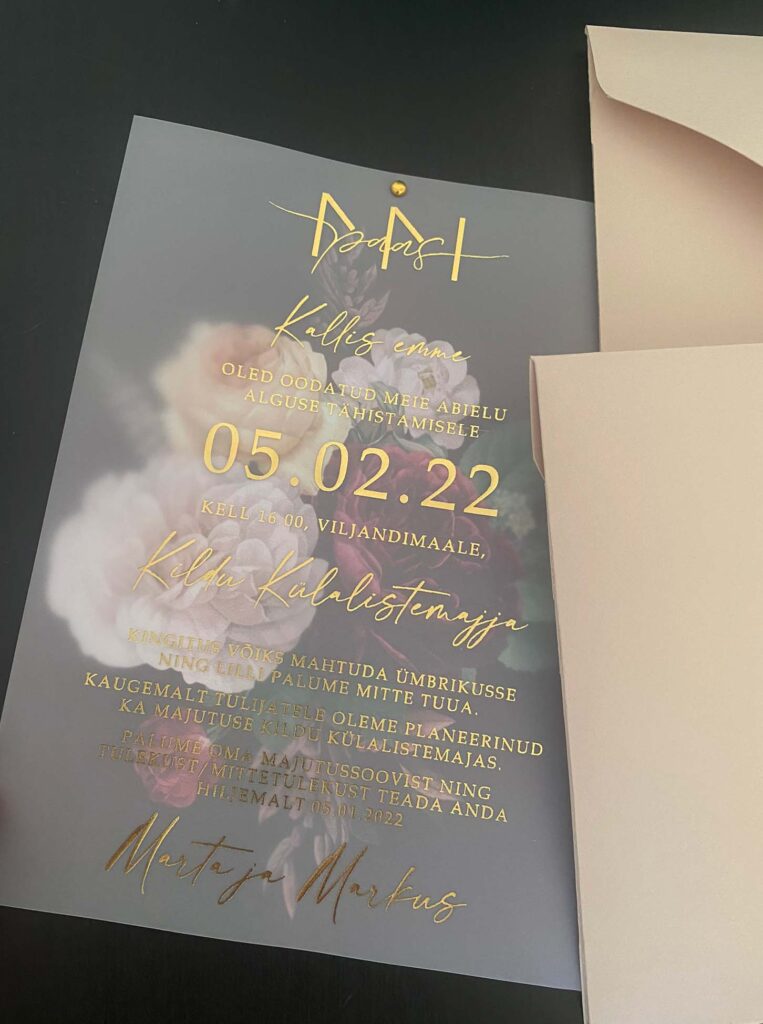 Valmistame fooliumtrükis ja digitrükis pulmakutseid.